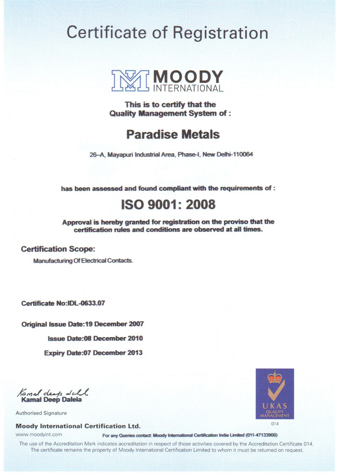 The Electrical contacts , Contact rivets, Weld on contacts , Button contacts,Stamped components , Strips , disc and Blanks , so produced, have a proven track record with economical answer to the need of reliable contacts in countless electromechanical switching devices of low voltage and high voltage power engineering, domestic appliances, automotive electrical systems, measuring instruments , closed and openloop control system and telecommunications . We understand the similarities, differences and unique requirements of each industrial segment. Our corporate philosophy is centered on total customer satisfaction. Based on a close partnership approach, we provide technical and economical optimized customer specific solutions.